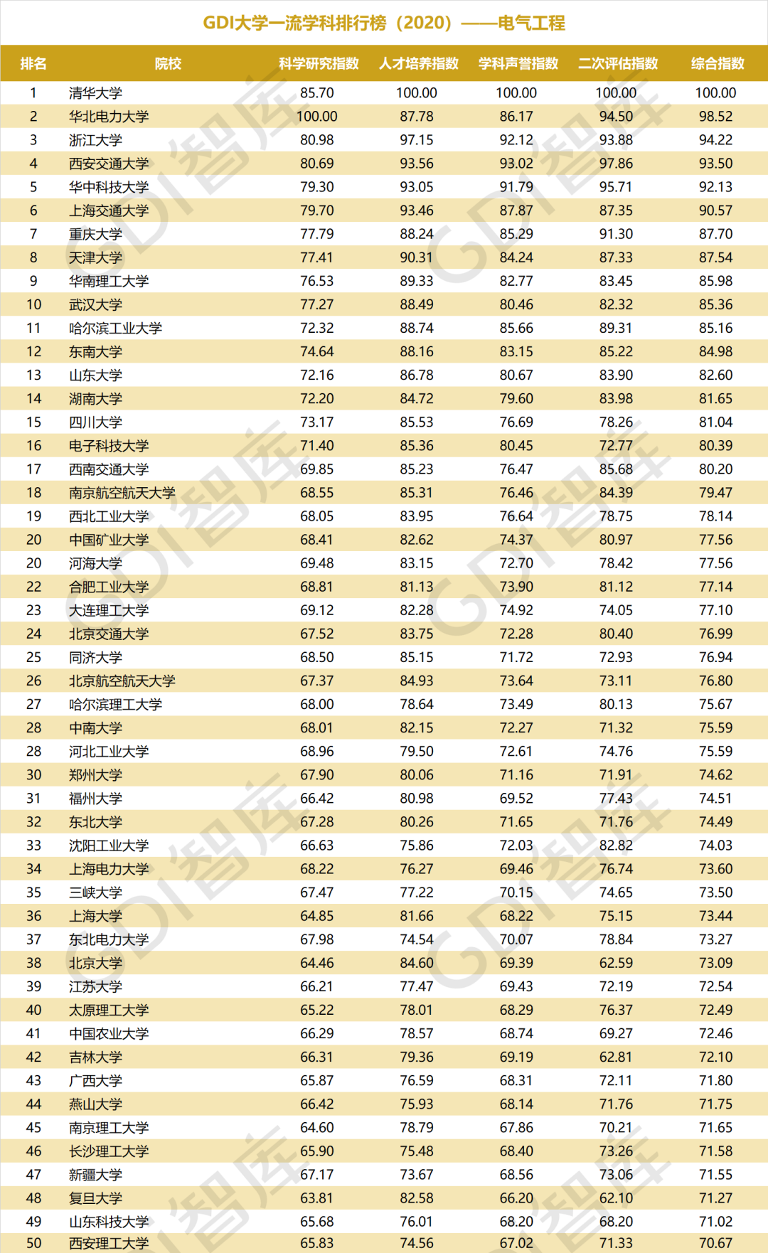 GDI大学一流学科排行榜(2020)公布 西安交大机械工程专业位列全国第一