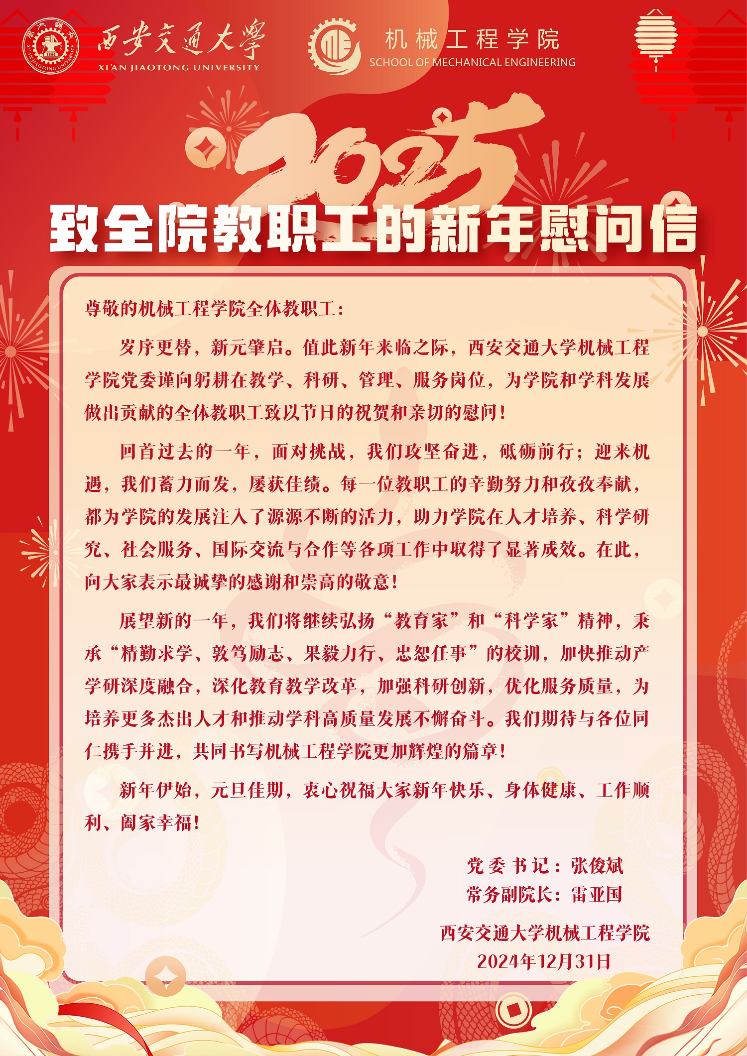 时序更替,华章日新。2025年的钟声即将敲响,机械工程元旦联欢会也在万众期待中拉开帷幕。这场联欢会不仅是对过去一年的深情回顾,更是对新一年的热切憧憬。此次联欢会到场的嘉宾有午夜AV 党委常委、副校长、机...