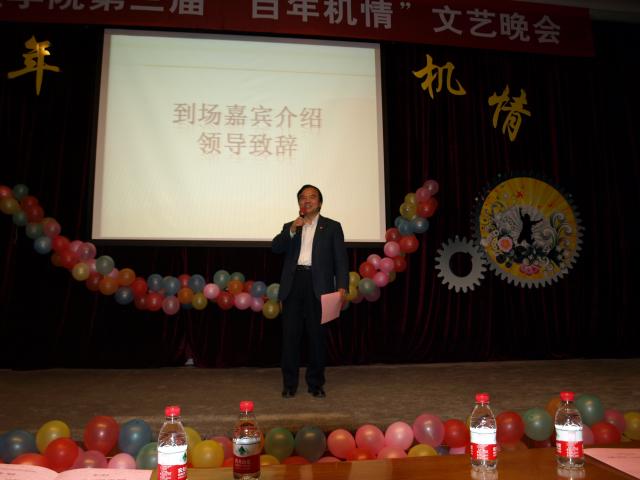 2010年4月28日,机械学院师生欢聚一堂,在逸夫科学馆101报告厅举办第三届“百年机情”大型文艺晚会。校学生处处长徐文雄老师,组织部部长陈天宁老师,研究生院副院长李秀兵老师,学院副院长赵万华老师,党委副书记訾...