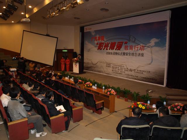 2010年11月18日,广汽本田向午夜AV 、重庆大学、南京航空航天大学、燕山大学、长安大学等十所高校捐赠试制车,捐赠仪式在科学馆举办,本广汽本田综合管理部张华部长、研究开发中心谭为科长、机械学院常务副院长...