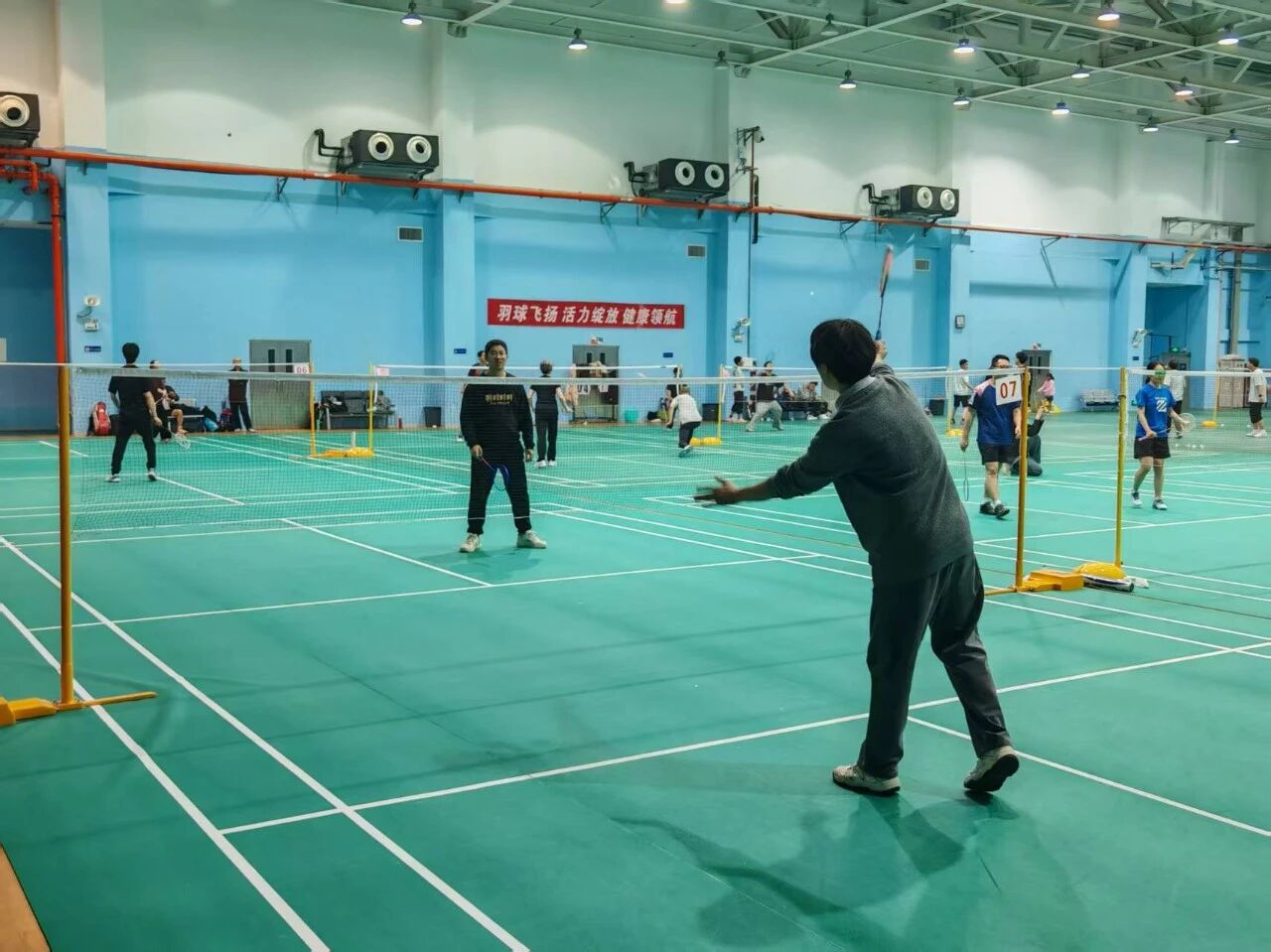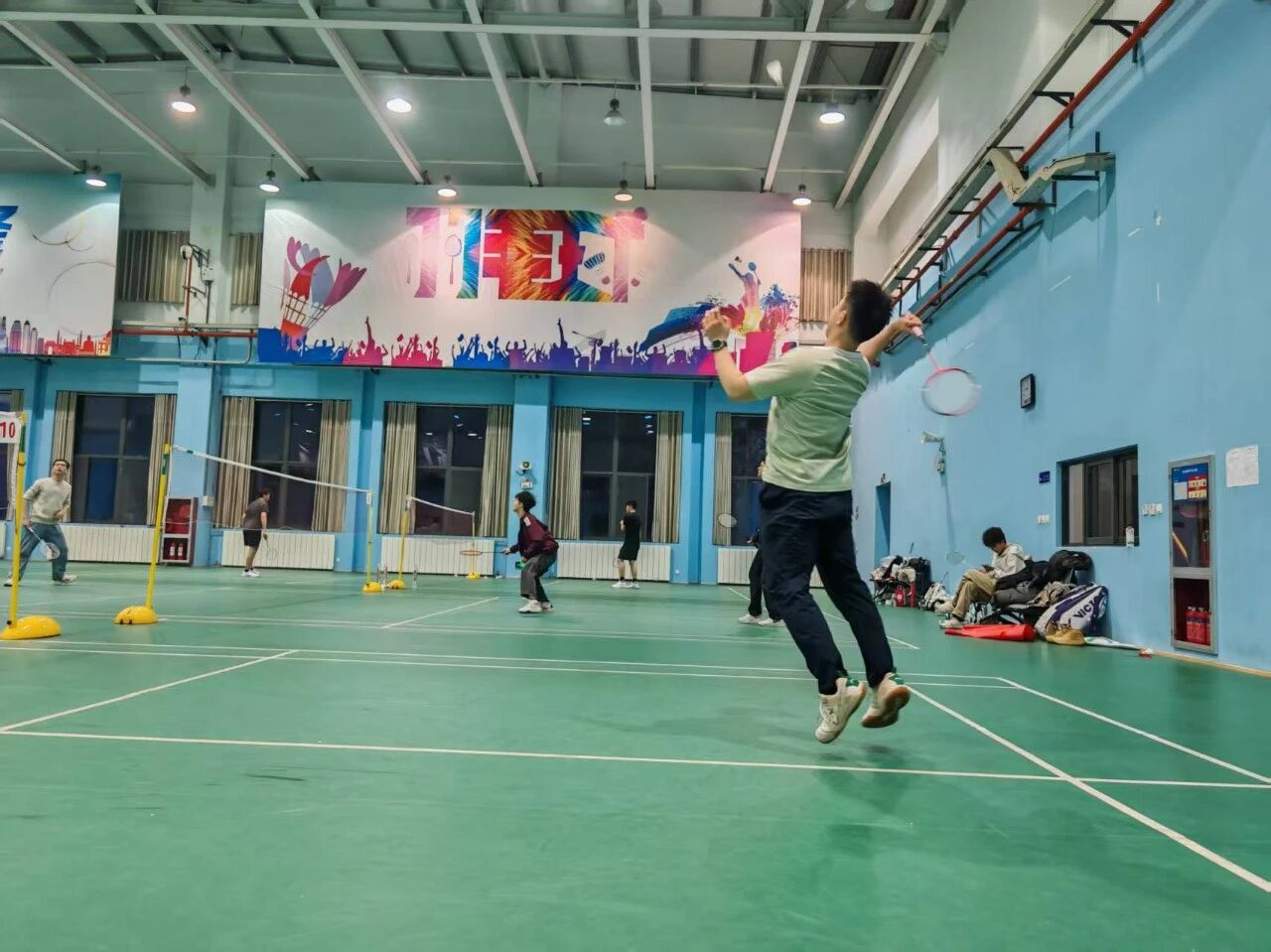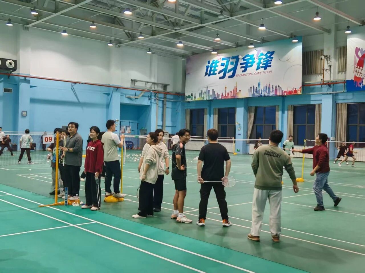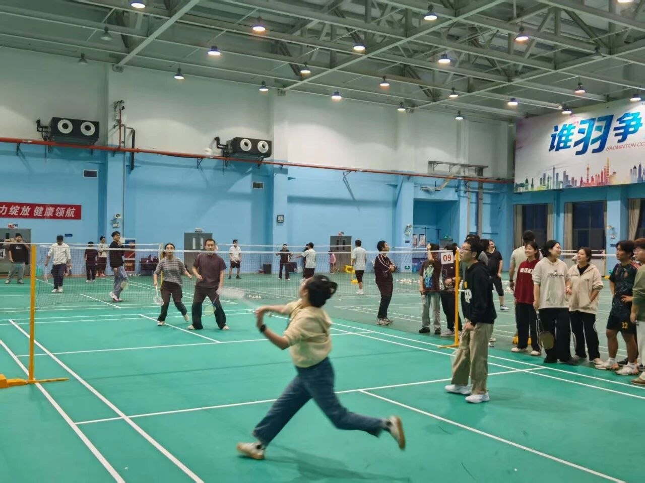 刘弘光老师为活动做了热情洋溢的动员,他的开幕词简洁而真挚:“平时在实验室里看大家做实验、写代码,今天终于能在球场上看到各位生龙活虎的一面!希望大家在比赛中放松身心、增进情谊,彼此传递信任与快乐,让我们这个‘师友齿轮’转得更快更顺畅!”这番话瞬间点燃了全场气氛,掌声与欢笑声此起彼伏。在刘老师的鼓励下,一场充满激情与欢笑的羽毛球赛正式拉开帷幕。
