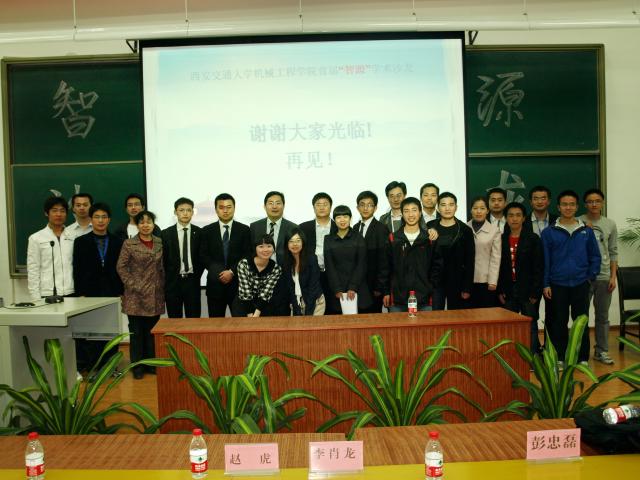 首先,訾艳阳教授做了简短的发言,他祝愿“智源”学术沙龙能够成为机械学子交流思想、切磋学术、启迪智慧、放飞梦想的源泉。其次,赵虎先生给同学们讲述了自己从交大毕业后如何奋斗创业的人生经历。他提出一个人要创业最适合选择中小企业,见证一个企业的发展过程是成功创业的关键,除此之外,一定要具备过硬的基本功以及创新意识才能让企业更具生命力及竞争力。紧接着,三一集团的李肖龙主管就创新与创业方面讲述了自己的一些切身经历。然后,作为一名刚走出交大不久的学长,三一集团起重机公司工艺装备研究院装配所的彭忠磊所长也和同学们分享了自己的成长经历。他认为一个人要想成功不论遇到多大的困难,一定要有坚定的信念。在三一,他感受到了大企业的精神魅力以及广阔的发展空间,同时他也希望学弟学妹们能为自己的理想而奋斗,成为一名出色的人,为交大争光!嘉宾发言之后紧接着是现场互动环节,同学们就创业与创新的各种问题与嘉宾进行了现场交流,气氛十分活跃。