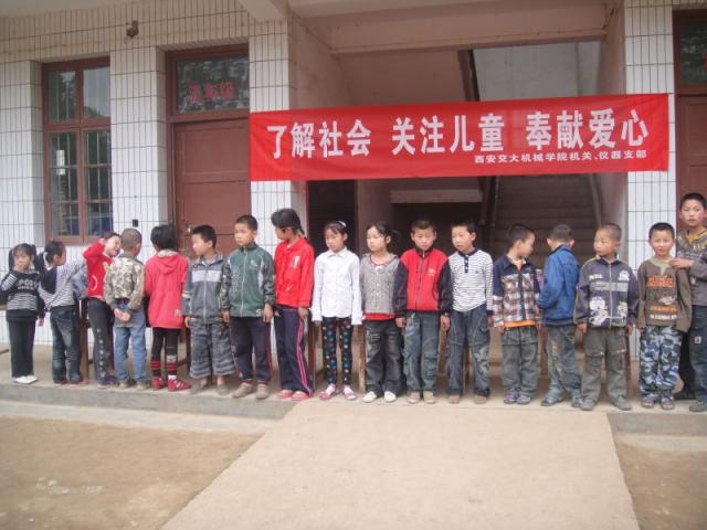 5月14日,机械学院机关支部与仪器支部积极响应学院分党委开展“创先争优”活动的号召,组织党员深入农村小学,进行了“了解社会、关注儿童、奉献爱心”的主题活动。两个支部来到蓝田县三里镇李后村小学,为15位特困生送去了书包、文具等学习用品,鼓励学生们好好学习,报效祖国,并且和李后村村支书及小学校长、老师进行座谈、交流,了解村办小学的现状和存在问题。