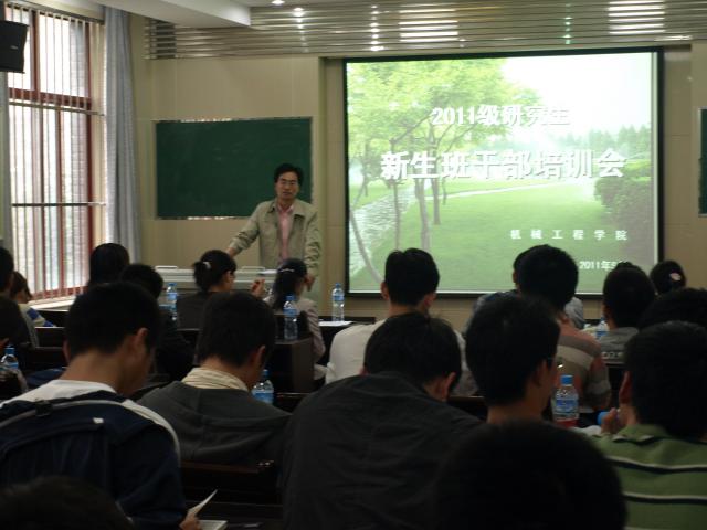 党委组织部许佳辉老师及学院研工办、教学办的老师等出席本次培训会并做讲话、报告;机械学院2011级研究生一、二年级各班班长、党支书及学院研究生分会的主要干部参加了本次培训会,并与新生班级干部交流传授经验,培训会由研工办雷励老师主持。本次会议为新当选的班干部积极有效开展班级工作提供了有力指导与帮助。