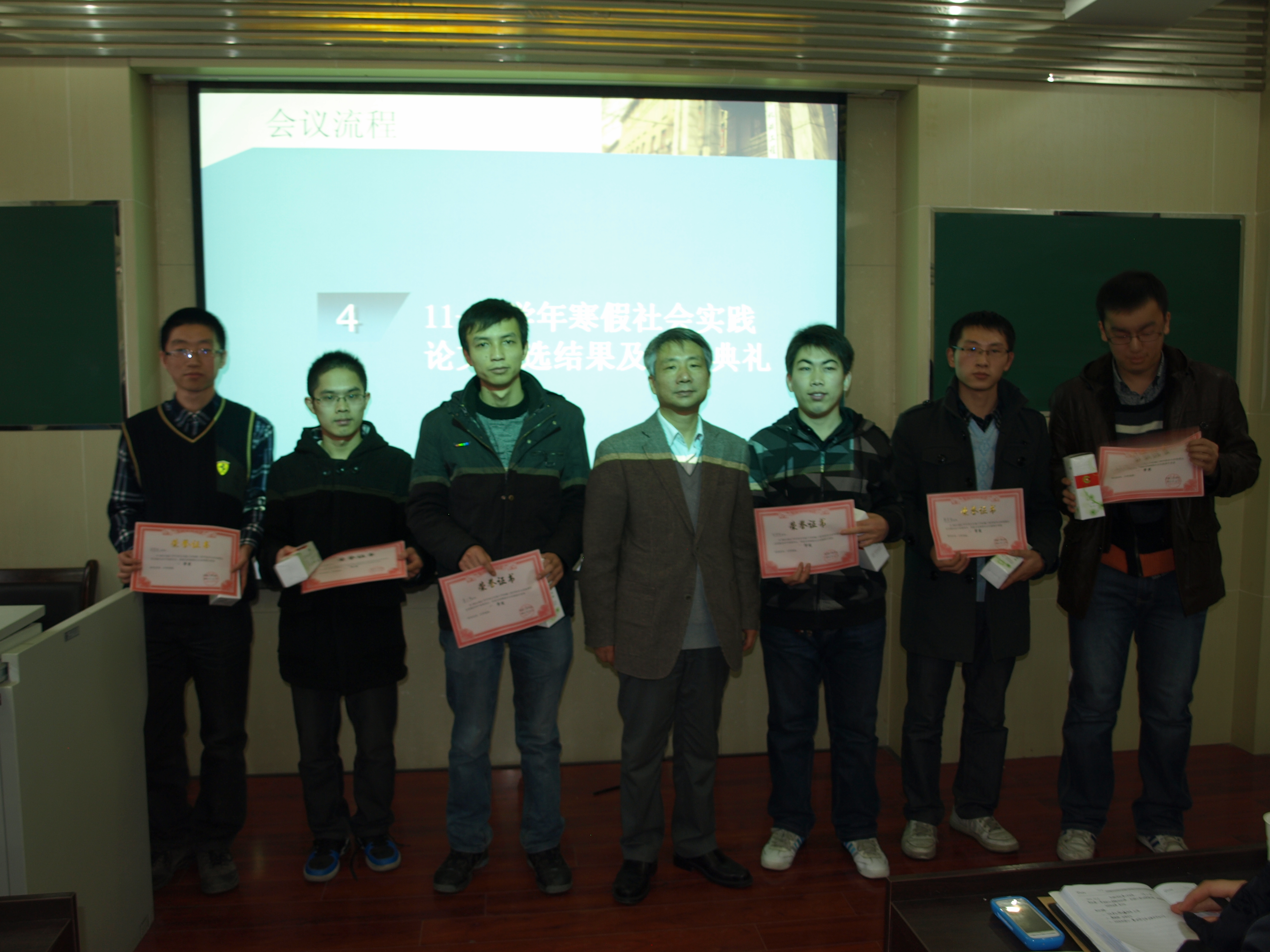 大会开始,全体起立,奏国歌。大会第一项,对2012年学院各方面学生工作进行总结。机械研究生会副主席董渊哲同学对团工委研究生会本学年的工作进行了总结;2011-2012年度先进班集体代表硕1001班班长吴雄辉向大家介绍了班级工作及活动;研会科技部王彬同学对寒假社会实践做了简单汇报;最后,研会文体部盘旋同学对上周积极参加冬季越野赛的个人进行了表扬。参加会议的几位领导和老师先后为先进班集体、优秀社会实践论文和冬季越野赛的获奖集体及个人颁发了证书及奖品。随后,杨鹏老师对学生工作进行了总结,并对研究生会和全院师生团结协作进行学习、工作给予高度评价。
