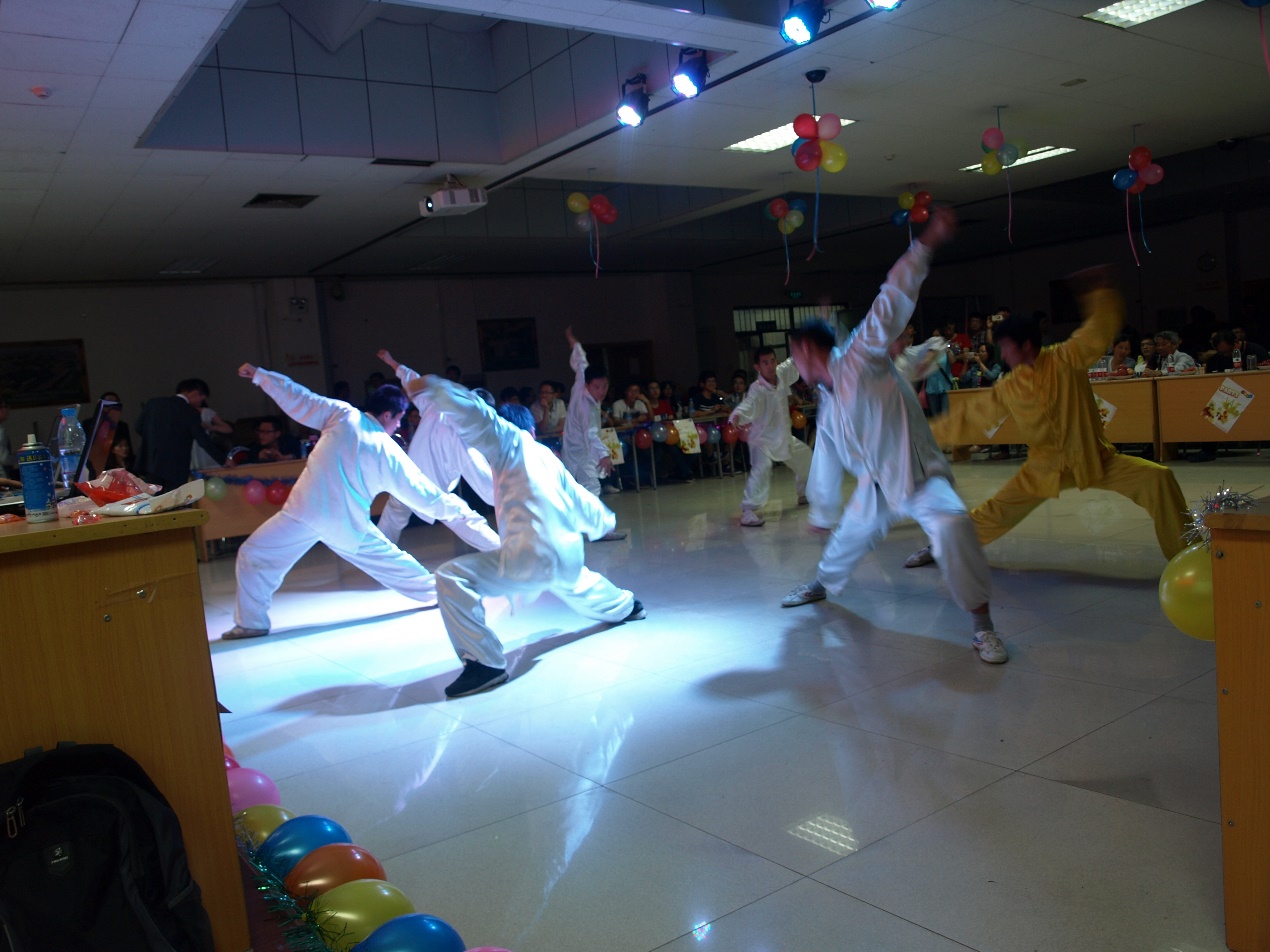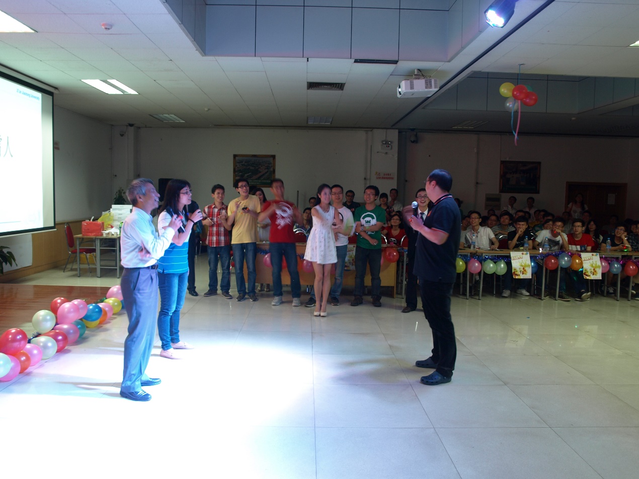 2014届毕业生致以衷心的祝贺。歌舞、小品、武术、游戏等精彩的节目为观众呈现了丰盛的视听盛宴。李志刚同学的自创歌曲《坚持到最后》向大家展示了机械工科男也有文艺的一面;来自硕3004班的姜广文等人的双节棍表演将刚与柔、力与美完美的结合在一起;第一个观众互动游戏环节——你比我猜,师生共参与,欢乐不断,将晚会推向了第一次高