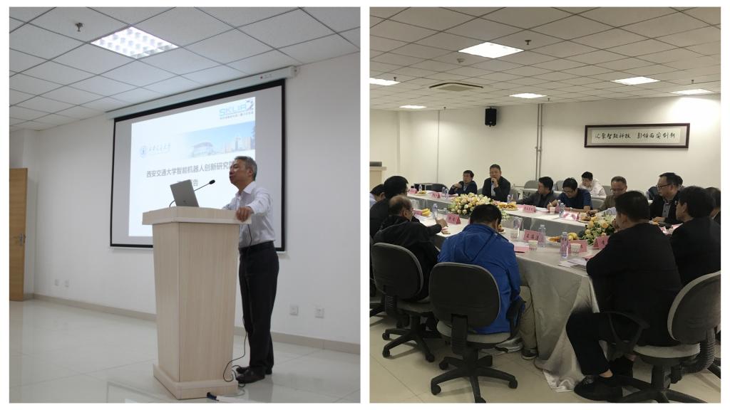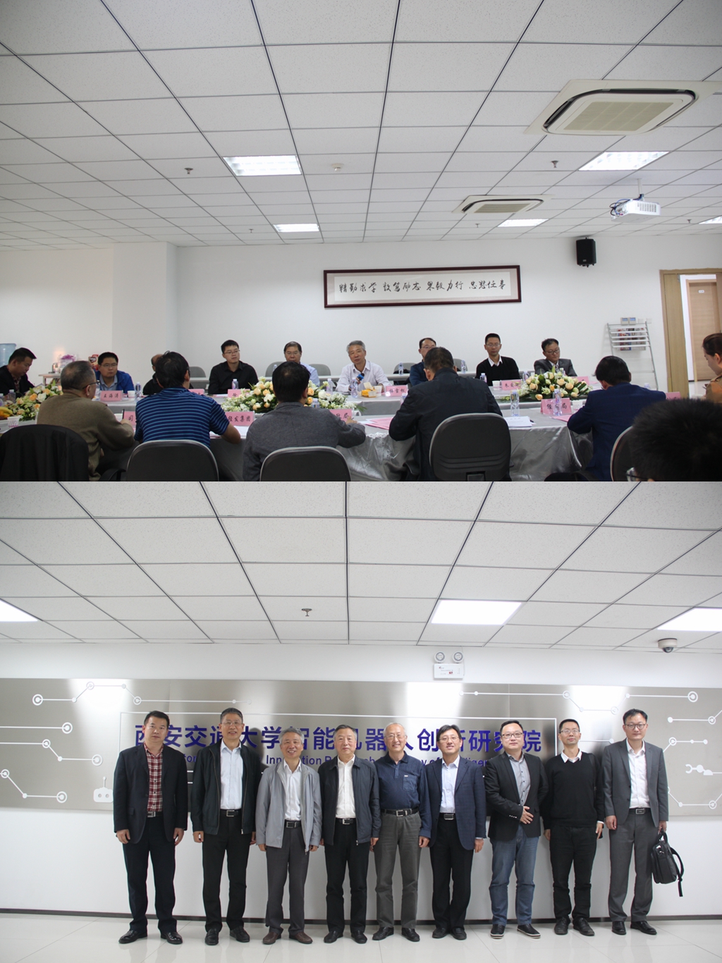 随后,梅雪松教授向与会专家汇报了研究院的发展现状、工作成果、未来规划以及产业化方向。评审专家组审查了相关的技术文件,听取了样机成果的详细报告,并针对各个样机进行了点评。评审专家组对样机的技术方案和目前取得的成果给予了充分肯定和高度评价。专家组认为研究院成立1年以来建设成效显著,研发团队开展了工业机器人、服务机器人、特种机器人等前沿技术和关键技术攻关,技术路线先进合理、应用范围广阔。专家组对研究院在技术开发委托合同规定时间内完成了10种具有创新性、展示度和市场推广前景的智能机器人的设计及原型样机研制工作外,还超额完成了3种智能机器人样机,所有13种样机外观设计、动态功能展示、性能指标测试均达到验收标准深表满意。最终评审专家组同意该项目通过验收。专家组建议西安经济技术开发区继续加大对交大机器人研究院的政策、资金支持力度,以此次样机成果为契机推进创新成果转化,推动西安机器人产业快速发展。