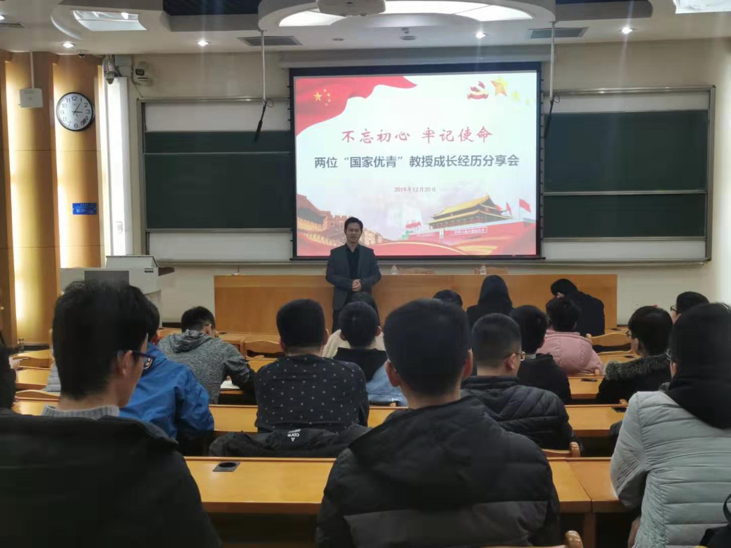 为积极响应和落实学校及学院“不忘初心、牢记使命”主题教育、传递榜样力量,同时在我校扎实推进双一流建设,二次西迁再启航,抢占制高点的关键时期,2019年12月20日下午,机械学院精密工程研究所特邀请到机械学院两位国家优秀青年基金获得者杨树明老师和曹宏瑞老师,在主楼B-103教室为大家分享了个人奋斗历程和教学科研的初心使命,讲述了他们在教学和科研工作中坚守初心、追求真理、踏实勤勉、教书育人的真实故事。机械学院党委副书记张敏老师受邀出席本次分享座谈会,机械学院部分青年教师、博士后、博硕士研究生参与了本次分享会,分享会由机械学院博士研究生吴晨同学主持。