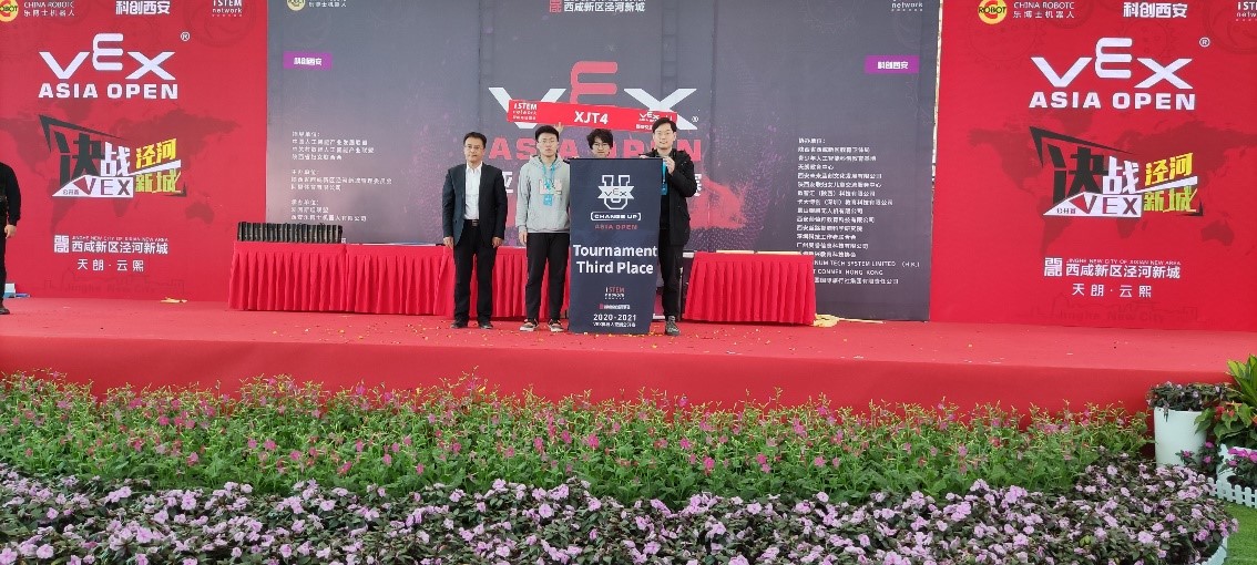 2021年4月2-5日,2020-2021赛季VEX机器人亚洲公开赛在中国西安泾河智慧农业园开幕,XJTU2与XJTU4队参加VEX大学组的比赛,与来自上海交通大学、同济大学、北京信息科技大学、陕西师范大学、华南农业大学等队伍同场竞技,经过激烈角逐, XJTU4队最终斩获联赛季军。
