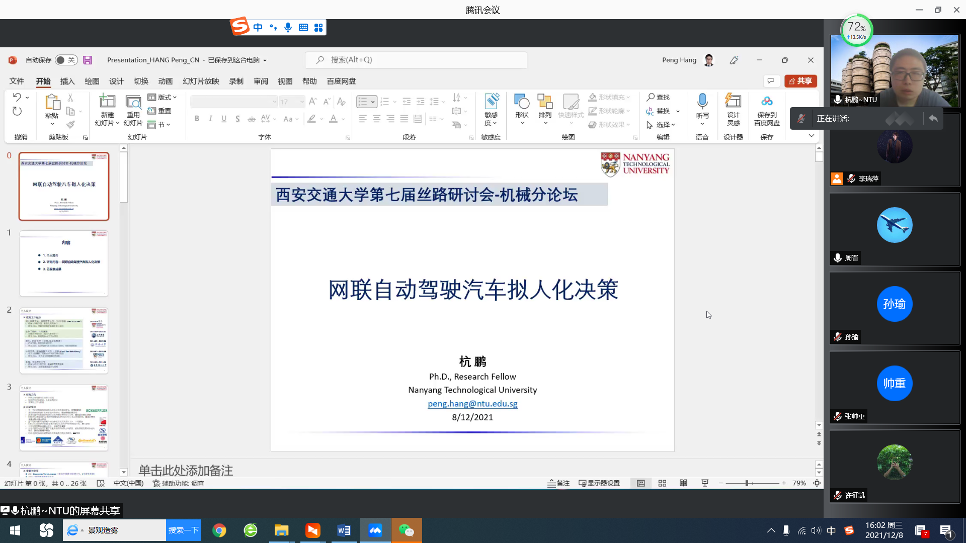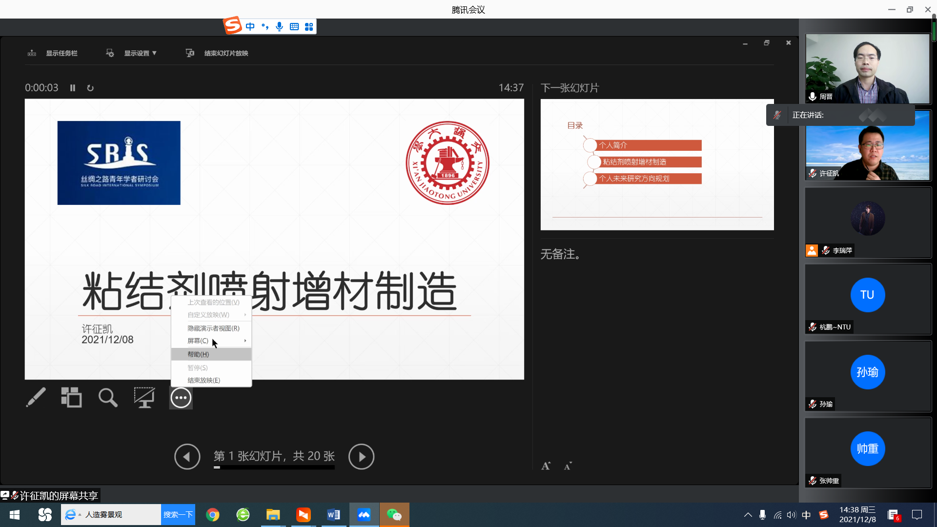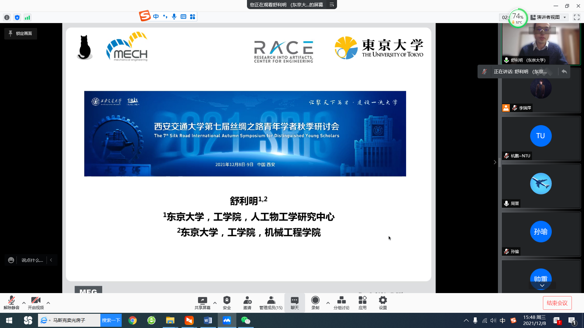 12月8日下午,第七届“丝绸之路青年学者秋季研讨会”机械分论坛以线上方式顺利召开。来自海内外不同国家的青年学者、学院青年人才及各相关领域的团队负责人通过网络会议“见面”、交流。会议由午夜AV 院长陈雪峰教授、国际机械中心周晋教授共同主持。