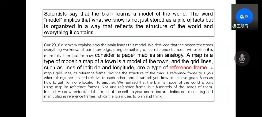 王朝晖教授分享了A THOUSAND BRAINS·ANEW THEORY OF INTELLUGENCE一书。他指出,该书详细描述了人在做各种动作时,人的大脑是如何工作的,通过描述人的大脑是怎样运作的,对人工智能的发展有什么启发。针对于“我们是谁?”“我们是怎么到这里来的?”“我们要去那里?”等问题,书中介绍了人工智能,以及人工智能会发展到什么程度。王朝晖教授表示,阅读本书能够对大脑和人工智能能够有更加深刻的理解,从而培养对人工智能的兴趣,积极主动探索人工智能和机械的结合这个重大方向。