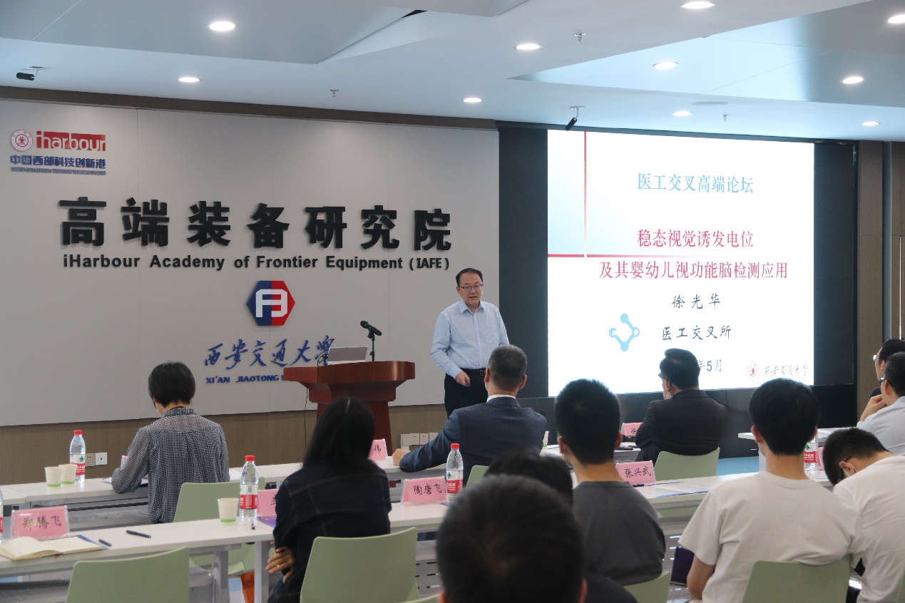 机械学院徐光华教授作了题为《稳态视觉诱发电位及其婴幼儿视力功能脑检测应用》的主题报告。之后将陆续开展乐普医疗与西安交大共建研究院签约仪式、西安市脑机交互与神经调控数字医学重点实验室揭牌仪式暨脑机交互数字医学论坛、高端装备研究院医工交叉研究所学术开放日、第一附属医院医工交叉学术沙龙、参加国家临床教学培训示范中心、双聘教师聘任仪式等系列活动。