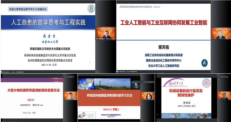 主办,清华大学、浙江大学、华中科技大学、大连理工大学、火箭军工程大学协办的“2022年首届全国智能运维学科交叉高端论坛”召开。论坛面向多学科、多领域交叉融合的国家战略方向与学科发展前沿,邀请了机械、自动化、电气、土木、力学等多个学科的专家,包括2位中国工程院院士、9位杰青等国家级领军人才、2位国际著名企业专家共13位做特邀报告,共同讨论智能运维在不同学科及应用领域的研究动态与发展趋势。论坛通过腾讯会议在线召开,并由《机械工程学报》JME学院同步直播,约4.9万人次线上观看了论坛直播。