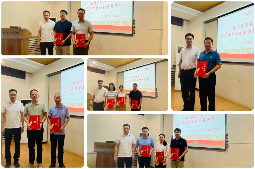 张敏主持颁奖典礼与启动仪式并汇报了2023年奖教金评审情况、获奖名单及新入职教师情况,依据学院奖教金评审文件及捐赠方意愿,经专家评审小组评定,共有16人获得五个奖项。雷亚国常务副院长和王永泉副院长分别给获奖教师颁奖并合影留念,每位获奖教师也逐一发言,虽然大家岗位不同、专业不同,但是为学科发展和学院建设的初心一致,立德树人、科研攻关、服务国家已经成为了交大机械人铭记于心的使命与荣光。