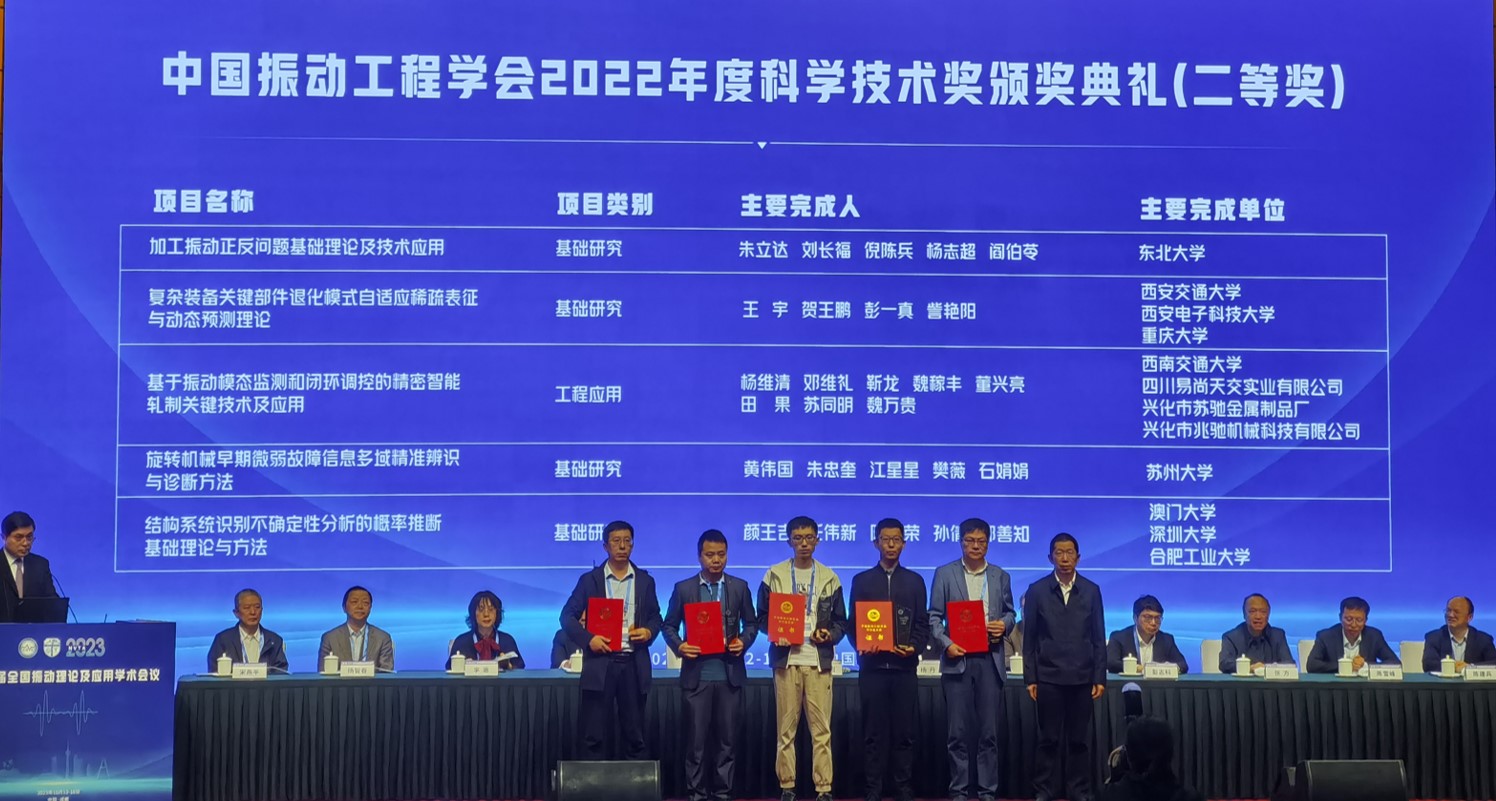 王宇副教授颁发了中国振动工程学会2022年度科学技术奖二等奖证书。