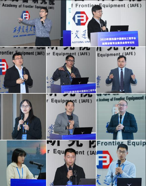王诗彬教授、江苏大学樊薇教授、苏州大学王俊教授、湖南大学邵海东副教授,国防科技大学贺雅博士、中南大学潘彤阳博士、昆明理工大学陈鑫博士,分享了他们在航空航天、轨道交通、新能源等领域的故障诊断最新研究及应用成果。报告引起了全场热烈讨论,获得了与会青年学者的强烈共鸣。