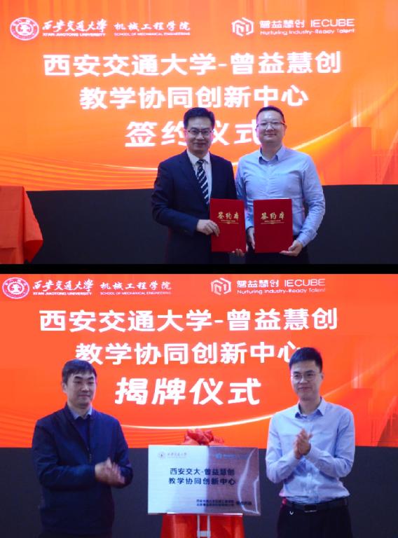 与北京曾益慧创科技有限公司(以下简称“曾益慧创”)共建教学协同创新中心签约及揭牌仪式在机械学院第一会议室举行。曾益慧创公司总经理孙正源,产品及市场总监刘晋东,高级副总裁、教育研究院院长管连,西安交大教务处副处长、午夜AV