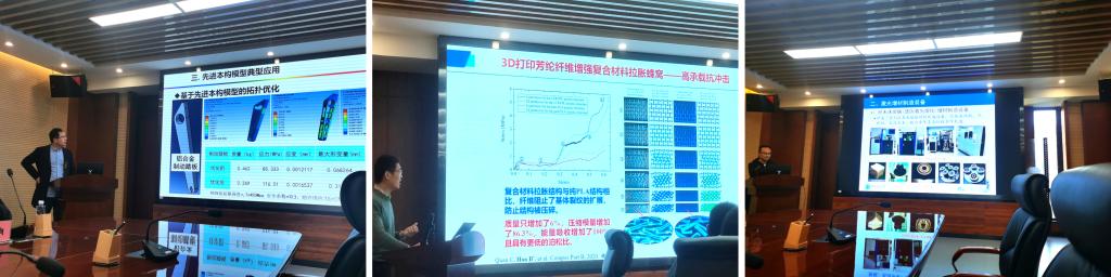 随后,国际机械中心娄燕山教授介绍了轻质金属塑性本构模型建立的研究工作及典型应用成果;装备智能诊断与控制研究所韩宾副教授汇报了团队在轻质多孔材料设计、性能分析及制造工艺等方面的先进技术与应用成果;先进制造技术研究所黄胜高级工程师分享了所在团队的增材制造工艺新方法与新技术;设计科学与基础部件研究所李响副教授讨论了视觉智能识别技术在车辆运维方面的应用前景。
