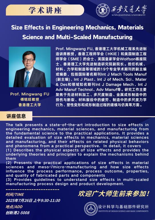 香港理工大学傅铭旺教授讲座通知