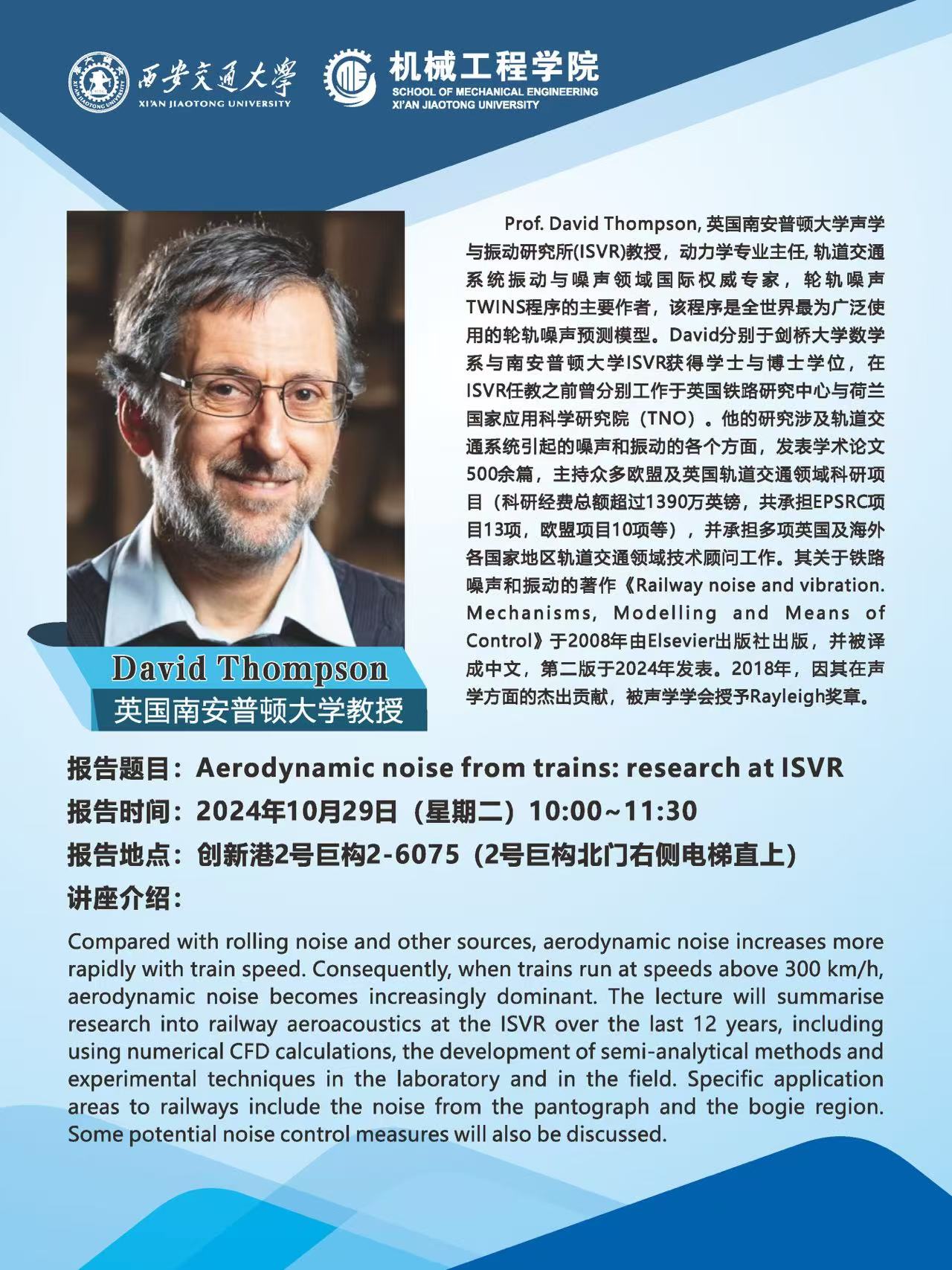 英国南安普顿大学David Thompson教授讲座通知
