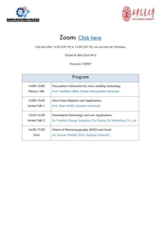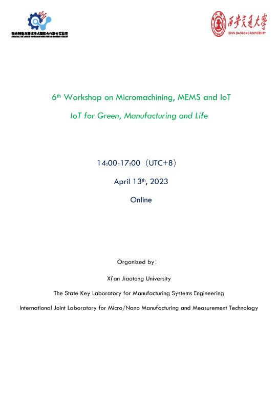 6th Workshop on Micromachining, MEMS and IoT IoT for Green, Manufacturing and Life