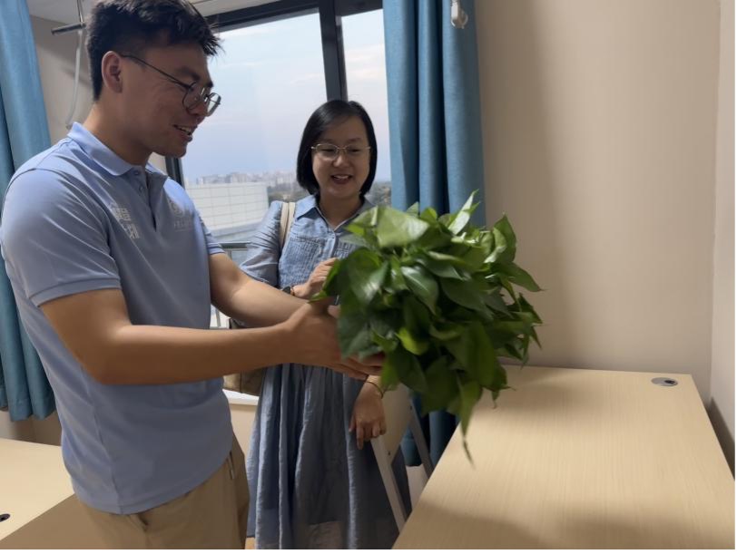 慰问过程中,学院为每位同学发放了精心准备的慰问品,每一份都承载着学院对新生们的关怀与期望。同学们纷纷表示,感受到学院的关怀与鼓励,更加坚定了努力学习、积极进取的决心。S4003班新生郝婧婧十分感动,她表示:“从本科到研究生,对于科研学习难度的担忧以及生活环境的巨大改变,我心中难免有些忐忑和不安,但学院的亲切关怀让我感受到了家的温暖,短短几天老师们、师兄师姐们以及同学们的关怀和帮助如春风化雨,不仅消除了我的顾虑,更激发了我对未来学习生活的无限憧憬。我深刻感受到学院对我们每一位新生的重视和期待,这让我更加坚定了在学术道路上勇往直前的决心。”