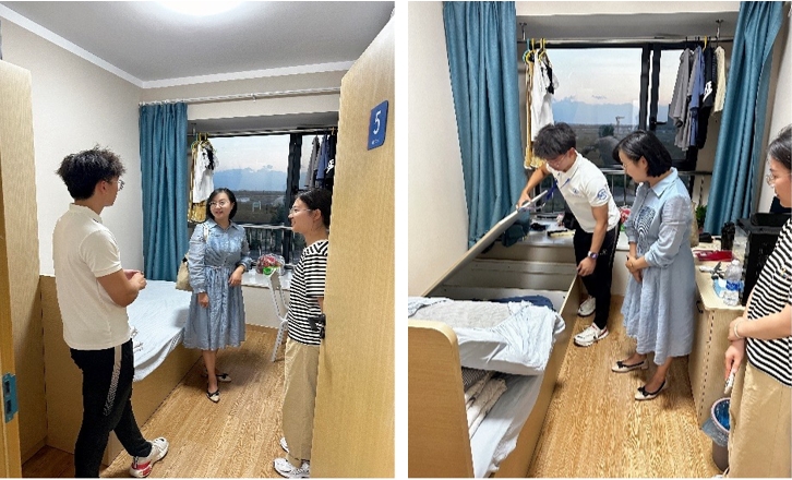 随后张敏副书记带队走访了部分宿舍,亲切地与同学们交谈,询问同学们是否适应新环境,生活上是否有困难,并耐心了解同学们入住后的感受等。
