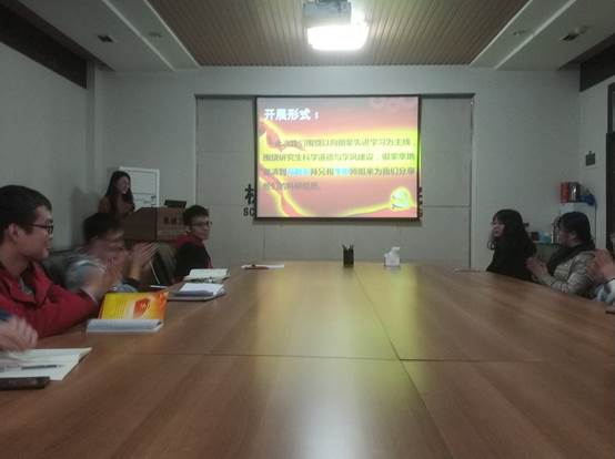 冯新安师兄和李玥师姐根据自己的科研感受和经验以及求职经验使这次党组织生活会举办的非常有意义,也使我们各位党员同志在今后的科研和求职过程中能够通过自己的努力,充分向榜样看齐,做时代先锋。