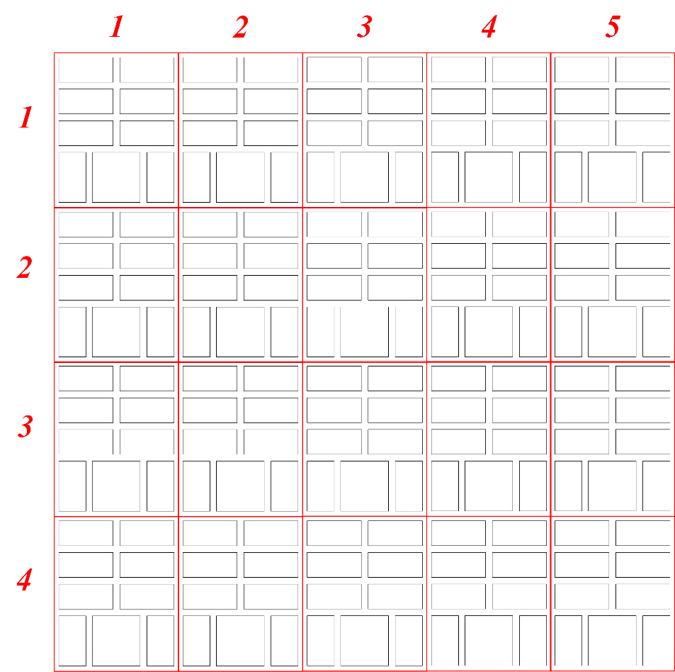 如图3所示为尺寸大小为1500mm×1500mm×50mm的吸声超结构样件的1/20示意图。将图3(a)所示的结构在水平方向周期排列6块,并在竖直方向周期排列4块即可组成1500mm×1500mm×50mm的吸声大样件,如图3(c)所示。