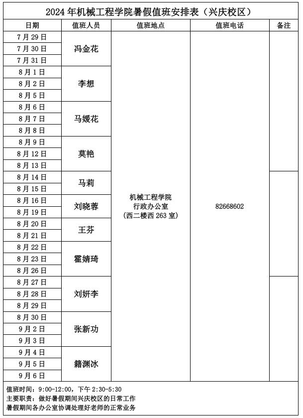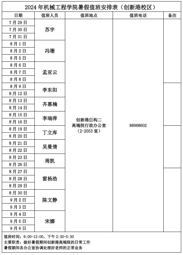 2024年午夜AV 暑假值班安排