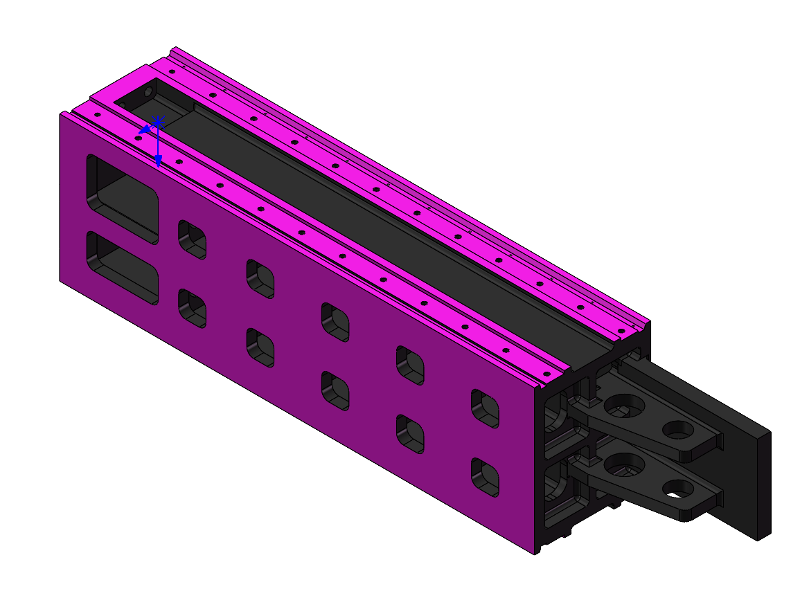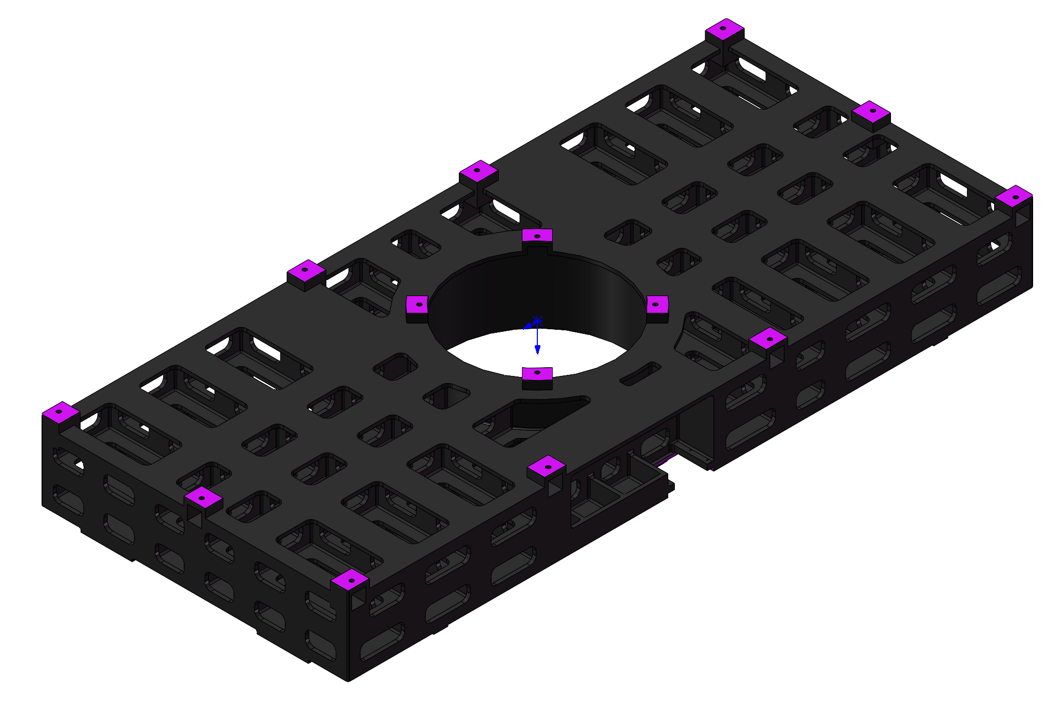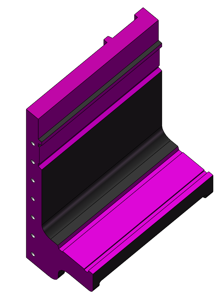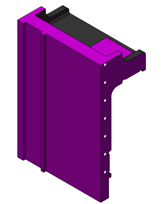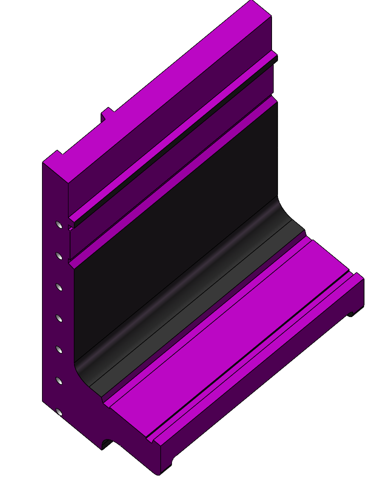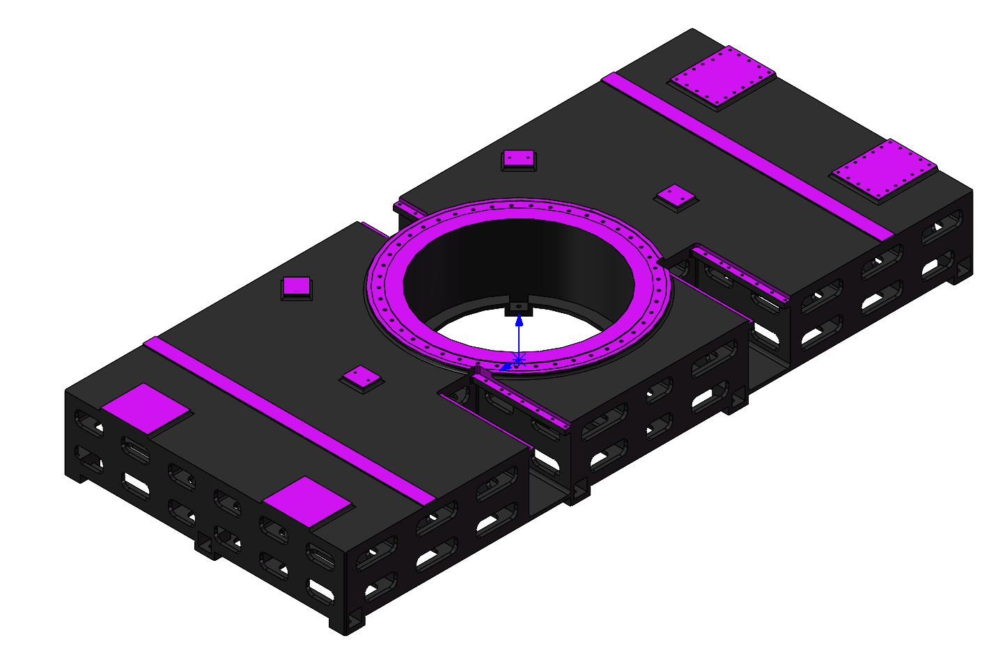 在原有铸件的基础上进行精加工。加工底座、立柱A、立柱B、横梁、Z轴滑块、X轴滑块A、X轴滑块B、共计8件,对加工面进行精加工,并钻孔以满足装配需求。导轨安装面需刮研。