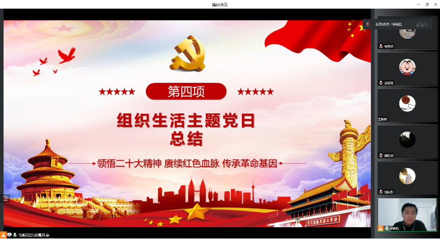 为进一步宣传学习并贯彻落实党的二十大精神,重温革命战争时期党中央在延安的峥嵘岁月,弘扬伟大建党精神和延安精神,并学习辛亥革命相关历史,加强对辛亥革命思想、精神内涵、意义的理解,硕2017党支部于2022年11月25日晚19:00开展了题为“领悟二十大精神,赓续红色血脉,传承革命基因”的11月组织生活。