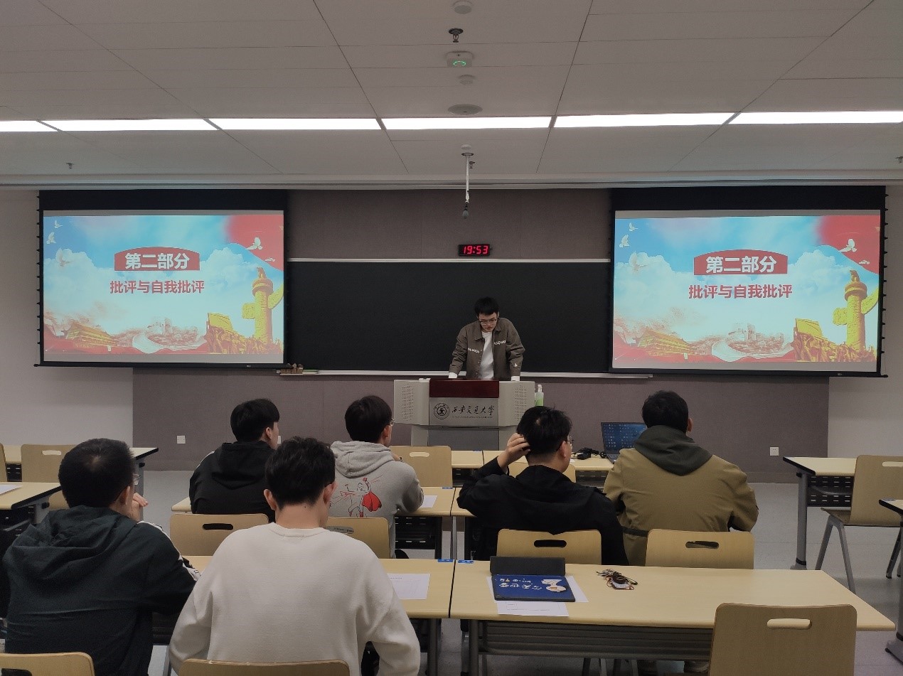 会议第二项,在张龙飞同志的带领下,支部党员轮流开展批评和自我批评。党员同志对过去一学期所取得的成就进行了总结,对自身所需要改进的方面进行深刻的自我批评,支部其他党员也对其开展批评,提出了针对性的建议。