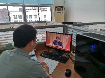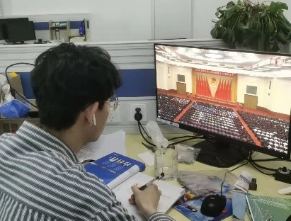 硕0004团支部成员认真收听收看大会实况直播,聆听习近平总书记重要讲话。总书记的讲话令人鼓舞、催人奋进,在支部成员中引发强烈反响。
