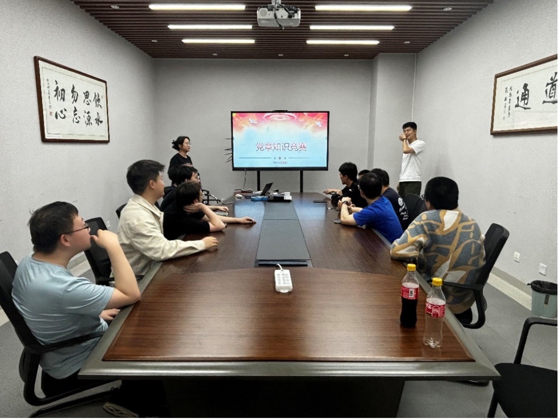 党章知识竞赛作为支部内较为重要的活动,吸引了同志们的广泛参与。同志们在赛前积极准备,重温党章知识,深入学习党章的内容。不仅如此,同志们还系统重温党史,通过了解中国共产党的历史来了解党的性质、宗旨和发展过程。在比赛正式开始之前,支部成员自发组队,共分为了四组,且每组均至少有一名正式党员。分组完成后,由主持人易亮天同志介绍了此次党章知识竞赛的规则。此次党章知识竞赛分为必答题、抢答题和风险题三个环节,充分考验了支部成员的党章知识储备、现场反应能力和团队协作能力。