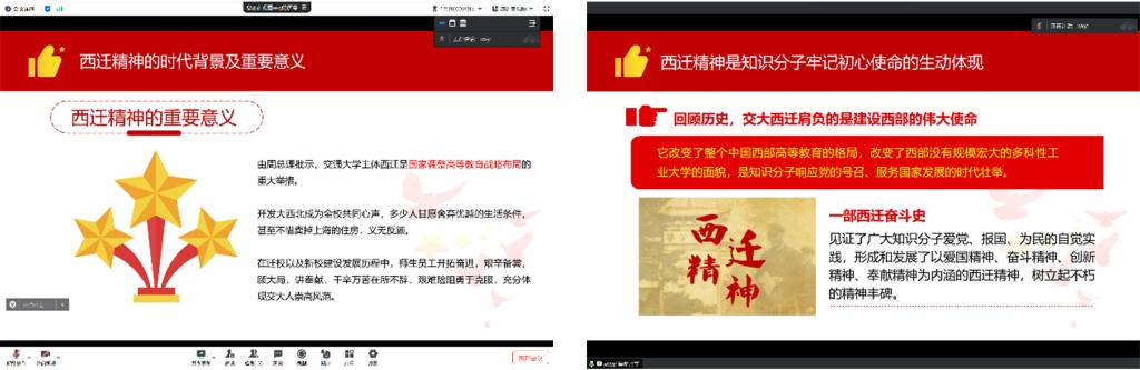 吴修远同志强调党员同志要继承和弘扬西迁精神,紧紧抓住西部大开发、共建“一带一路”等重大机遇,以时不我待的紧迫感、舍我其谁的责任感,主动担当,积极作为,为西部振兴、为国家经济社会发展不断做出历史性贡献。在新时代历史阶段,我们要坚守正确政治方向、谱写胸怀大局新篇章,秉持爱国奋斗的价值追求、续写无私奉献新故事。