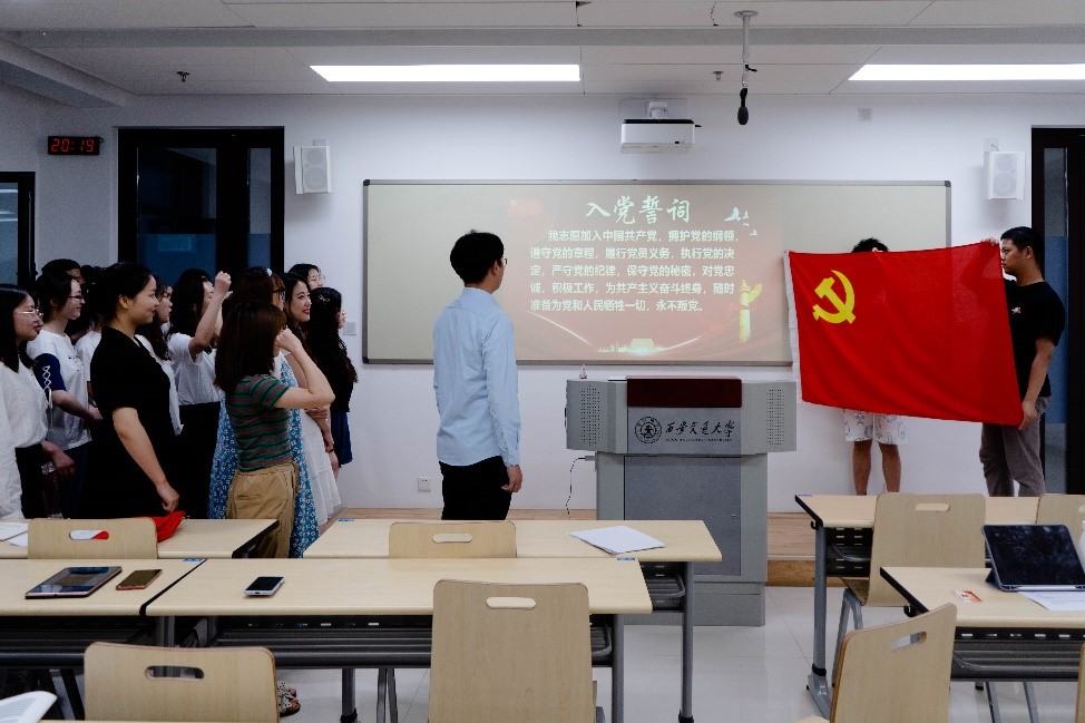 新时代的学子,深入贯彻落实总书记讲话精神。在中国共产党百年华诞之际,参加学习的支部全体党员同志重温入党誓词,面对党旗庄严的宣誓,回忆自己的入党初心。