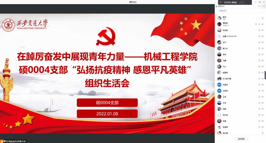 硕0004党团支部召开线上组织生活会,弘扬抗疫精神,感恩平凡英雄,号召全体同学以青春践行使命担当。